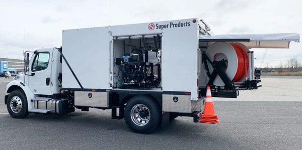 SuperJet Truck Mounted Sewer Jetters blast debris to clear blockages and maintain sewer lines with the industry’s strongest and smoothest single piston water pump when vacuuming extraction is not required. Each unit has convenient curb and street side fill for municipal and residential sewer cleaning and comes standard with a highly accommodating hose reel with 1000’ of 1” diameter sewer hose, has 200° rotation and a digital monitor. This allows operators to work efficiently while positioning themselves out of traffic and other hazards. The monitor displays a hose footage count, offers 20 saved settings for hose reel payout and is designed with LED panel lights to enable readability in a variety of environments. Units also come standard with rotationally molded polyethylene water tanks in a modular design that accommodate a range of water capacities and are eco-friendly.